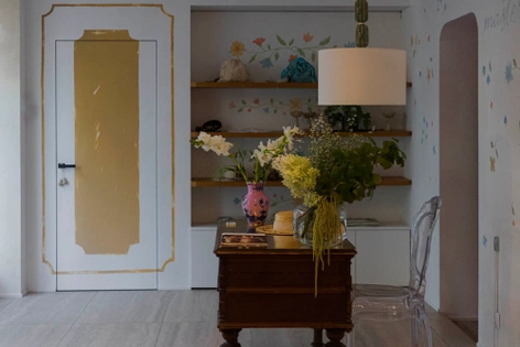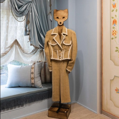 В глубине тихого дворика гостей встречает крыльцо с уникальными перилами, украшенными кроличьей семейкой — символом бренда. Интерьер напоминает антикварную шкатулку: фрески в тосканском стиле, винтажная мебель, цветочные обои и фирменные детали создают атмосферу сказки. В бутике два зала — основной и «тайная комната», где проходят показы новых коллекций и распродажи. Пространство живёт своей душевной жизнью: здесь можно примерить платье, выпить лимонад на крыльце и почувствовать себя дома. Витрины украшают деревянные манекены-зверушки и большой экран с видеообразами коллекций. На полках — аксессуары, фарфоровая посуда с узнаваемыми принтами, игрушки в нарядах Masterpeace.